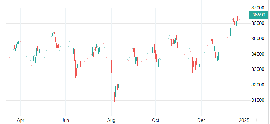 Le azioni statunitensi hanno chiuso in rialzo martedì, con l'S&P 500 che ha guadagnato lo 0,9%, il Nasdaq che ha guadagnato lo 0,6% e il Dow che ha fatto un balzo di 538 punti, sostenuto dal sollievo per le misure commerciali inaspettatamente più morbide del Presidente Trump dopo il suo primo giorno in carica. Il Presidente ha minacciato di imporre tariffe fino al 25% su Messico e Canada, ma si è astenuto